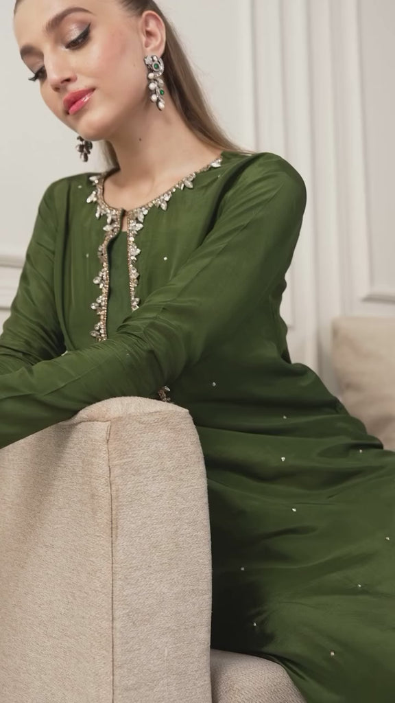 Handwork Beads Zaari Work Embroidery 🪡 Semi Pure Shamooz Silk Shirt 1.75_ Trouser With Pure Organza Oil Paint Duppata Along 1.75 matching Pure Shamoze Trouser 3 Pc Dress 👗